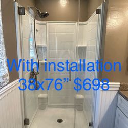 Hi everyone We have this corner shower set only door and walls for now i dont have the base but you can order online Retails price both items $990 w$800Victorville, CA