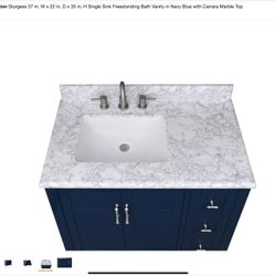 New In Box Home Decorators Collection Sturgess 37 in. W x 22 in. D x 35 in. H Single Sink Freestanding Bath Vanity in Navy Blue with Carrara Marble. .$600Hesperia, CA