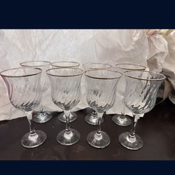 Set Of 8 Crystal Clear Industries Regent Gold Swirl Optic Gold Rim Water Goble$13San Bernardino, CA