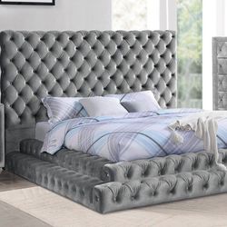 Queen Size Brand New Glam Silver Grey Tufted Pedestal Platform Bed$599Barstow, CA