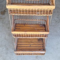 Pre-owned used 3 tier bamboo, wicker, wood, wrought iron RUSTIC industrial basket$300Fontana, CA