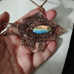 Artisan Copper Wire Labradorite Fish Necklace$60Hesperia, CA
