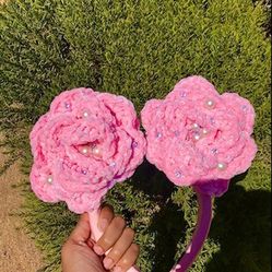 New Pink and MustardFrench knit bow headbands. Materials: yarn, nylon headband. Each bow approx. 2.5” Headband should fit any baby from newborn to$6Fontana, CA