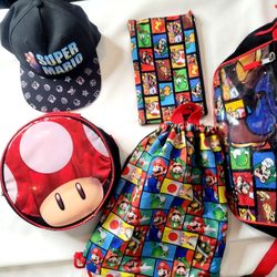 Super Mario Bundle Backpack Pencil Case & Mario Bross Beisball Hat Kids$15Hesperia, CA