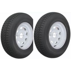 Two Radial Trailer Tires & Rims ST205/75R14 205/75-14 14" 5 Lug Bolt White Spoke$220San Bernardino, CA