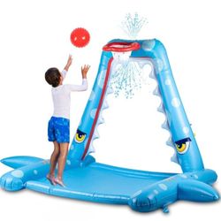 Zone Tech Splash Pad Sprinkler for Kids Outdoor Play, Big Inflatable Shark Sprinkler with Basketball Hoop$24Hesperia, CA