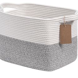 Goodpick Woven Storage Basket, Small Laundry Basket for Clothes, Towels and Shoes, Rope Square Gift Organizer with Handles, Gray and White, 13 x 10 x $7Rialto, CA