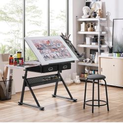 Height Adjustable White Art Desk for Adults, Tilting Tabletop Drafting Drawing Table with Extra Large Desktop and Drawers, Foldable Stand up Craft Pai$89Rancho Cucamonga, CA