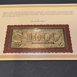 1890 $1,000 “Grand Watermelon” Treasury Note – Replica Display$7Apple Valley, CA
