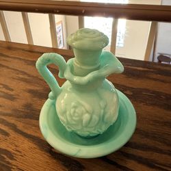 Vintage Avon Jadeite Green Swirl Milk Glass-Rose Mini Pitcher & Bowl Set$20Victorville, CA