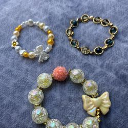 Handmade Bracelet Set Of 3 With Pearl Acrylic Crushed Glaze Beads$15Fontana, CA