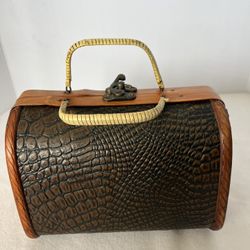 vintage faux alligator, rattan, bamboo, and wood mini handbag$10Highland, CA