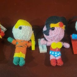 DC Comics string voodoo dolls, which are novelty keychains or ornaments featuring characters like The Flash, Wonder Woman, and Superman. $10Victorville, CA