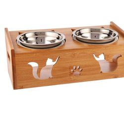 Dog Cat Bowls, Raised Pet Feeder Solid Bamboo Stand Perfect for Cats and Small Dogs (4 Bowls Incline)$25Rialto, CA