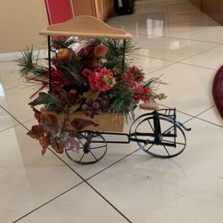 Christmas Time Is Near !!! Wrought Iron and Wood Tricycle Planter With Flower Arrangements $29Fontana, CA