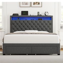 Full Bed Frame w/ LED Lights & Charging Station - Upholstered$140Rialto, CA