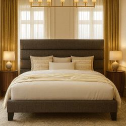 Full Bed Platform Bed Frame with Fabric Upholstered Headboard and Wooden Slats Support, Fully Upholstered Mattress Foundation/No Box Spring Needed/Ea$85Fontana, CA
