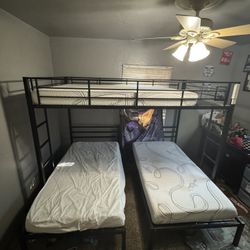 Full/Full/Twin Gray Wooden Bunkbed w. Ortho Mattresses Included $925Victorville, CA