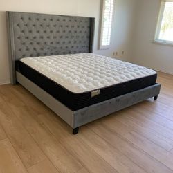 King Size Modern Wingback Button Tufted Bed w. Orthopedic Mattress Included $579Victorville, CA