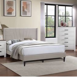 Cal King Size Chanelle Wingback Platform Bed w. Orthopedic Mattress Included $579San Bernardino, CA