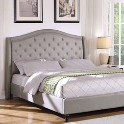 Gray King Size Bed With Button Tufted Headboard & Silver Nailhead Trim$250San Bernardino, CA