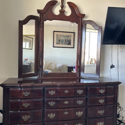 4 Post Bed Frame, Dresser/Vanity Trifold Mirror, Two Night Stands$500Hesperia, CA