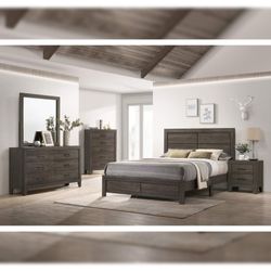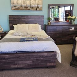 4pc Bedroom Set $969 Queen $1069 Eastern King/California King Includes Bedframe Dresser mirror nightstand Rustic Brown Bedroom Set$969Victorville, CA