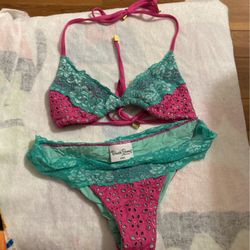 Beach Bunny bikini turquoise & pink lace braided$30Rialto, CA
