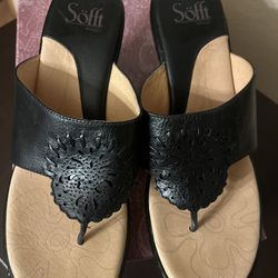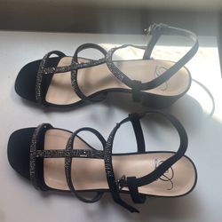 Fiona sandals in black, featuring a low heel and available in size 8. In Box$15Apple Valley, CA
