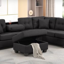 Black Sectional Sofa With Ottoman $629Rialto, CA
