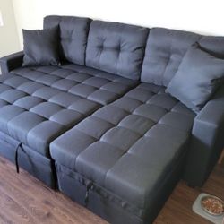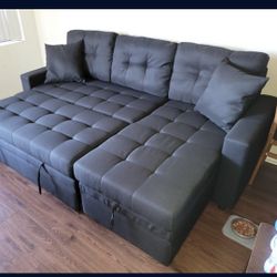 Brand New Sofa Pull Out Bed Black Fabric 2 Pillows Storage Chaise $525 FREE LOCAL DELIVERY & SET UP ONLINE SALES ONLY ORDER HERE PAY UPON DELIVERY NOT$525Redlands, CA