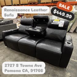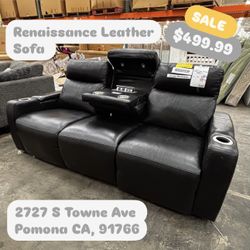 Renaissance Leather Sofa W/ Drop Down Table $450Fontana, CA