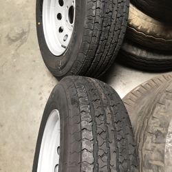 4xST trailer tires 205-75-14 c ply with aluminum wheels$700San Bernardino, CA