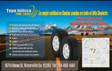 Used tires with 90% open Sunday's 16714 union st Victorville$0Victorville, CA
