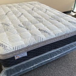 12in King Size LIMITED EDITION Bamboo Orthopedic Comfort Europillow Top Mattress and Boxspring $275Victorville, CA