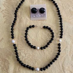 Real 14K Gold, Onyx, and Pearl Jewelry Set$225Barstow, CA