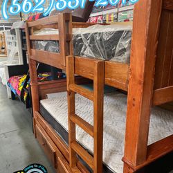 Twin/Full Expresso Bunk bed w. Drawers & Ortho Mattresses Included $649Victorville, CA