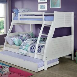 Twin/Full/Twin Antique White Hoover Collection Bunk bed w. Orthopedic Mattresses Included $949Hesperia, CA