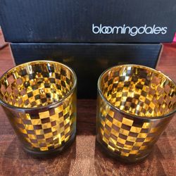 Bloomingdale's Votive Glass Candle Holders, Checkerboard Silver & Gold Set$10Apple Valley, CA