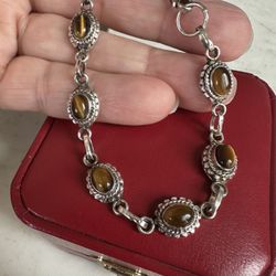 925 Sterling Silver Genuine Tigers Eye Bracelet, Size 7.5, Marked 925 , Hook Closure , 14 Grams , Beautiful! $35Victorville, CA