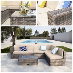 Patio furniture set for outdoor or indoor. For Garden wicker with Coffee Table And Beige Cushions ONLY. K-1043. $450San Bernardino, CA