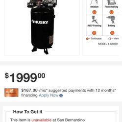 Brand new husky air compressor$400San Bernardino, CA