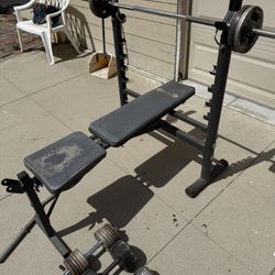 Bench And Squat Rack With Weights And Curl Bar$500Rialto, CA