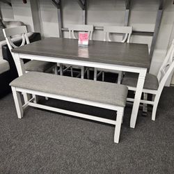 Brand New Dining Set Table 4 Chairs & Bench White & Grey $509$509Redlands, CA