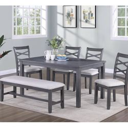Solid Wood 6 Pc Dining Table Set With Bench $379San Bernardino, CA