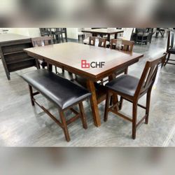 Counter height dining table set with 4 chairs and bench included $549San Bernardino, CA