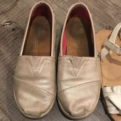 TOMS Girls Light Pink Shimmer Size 1.5 / FREE White Sandals $5Rialto, CA