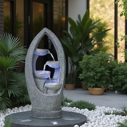 Dalxo 31" H Water Fountain Outdoor, 4 Tier Modern Garden Cascading Stone Bowl Outdoor Waterfall Fountain, Garden Waterfall with LED Lights, Suitable f$100Hesperia, CA