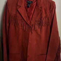 Denim $ Co Red Leather Fringed Jacket$100Hesperia, CA