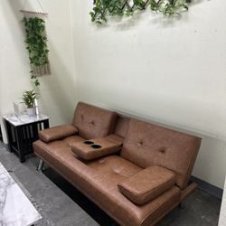 Modern Faux Leather Convertible Futon Sofa Bed with Cup Holders, White$150Fontana, CA